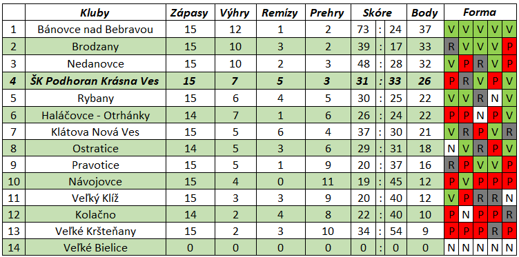Výsledky jesennej časti